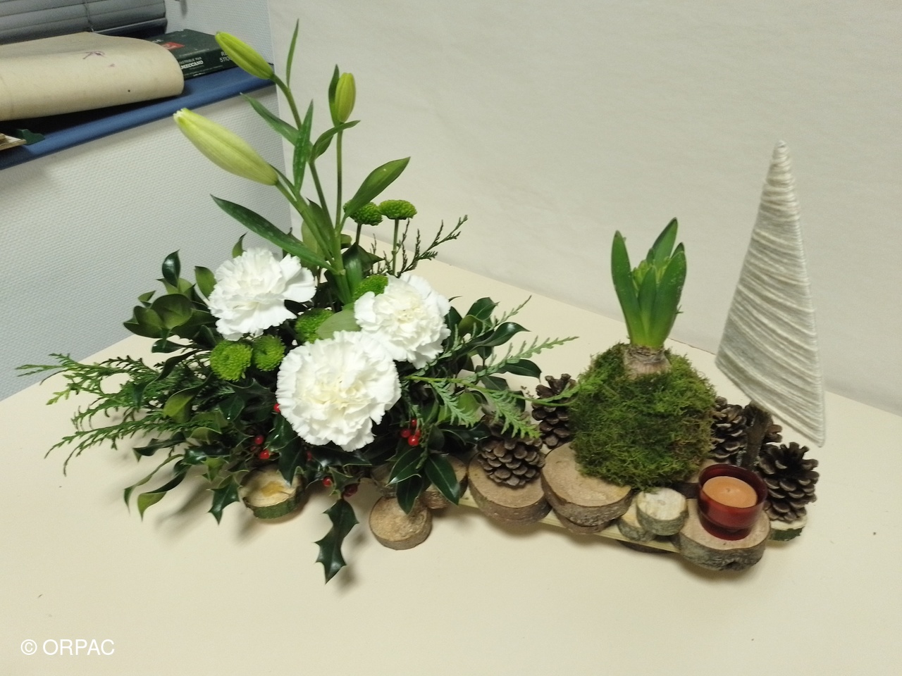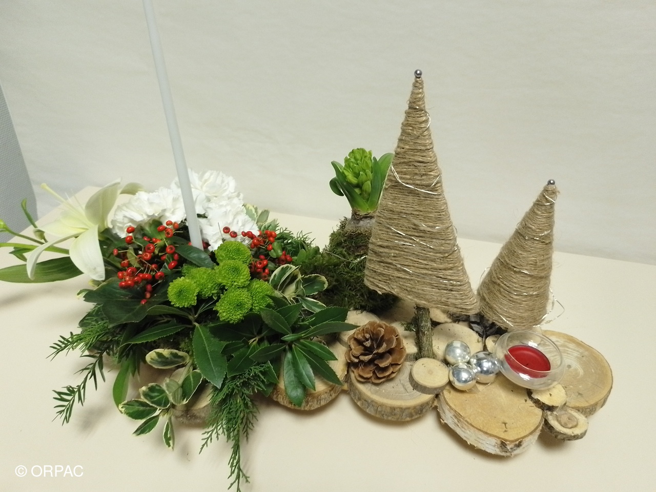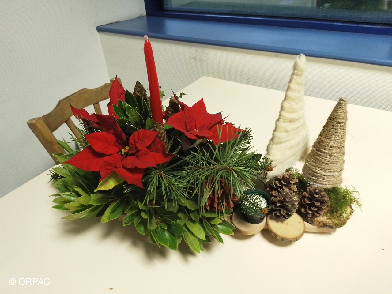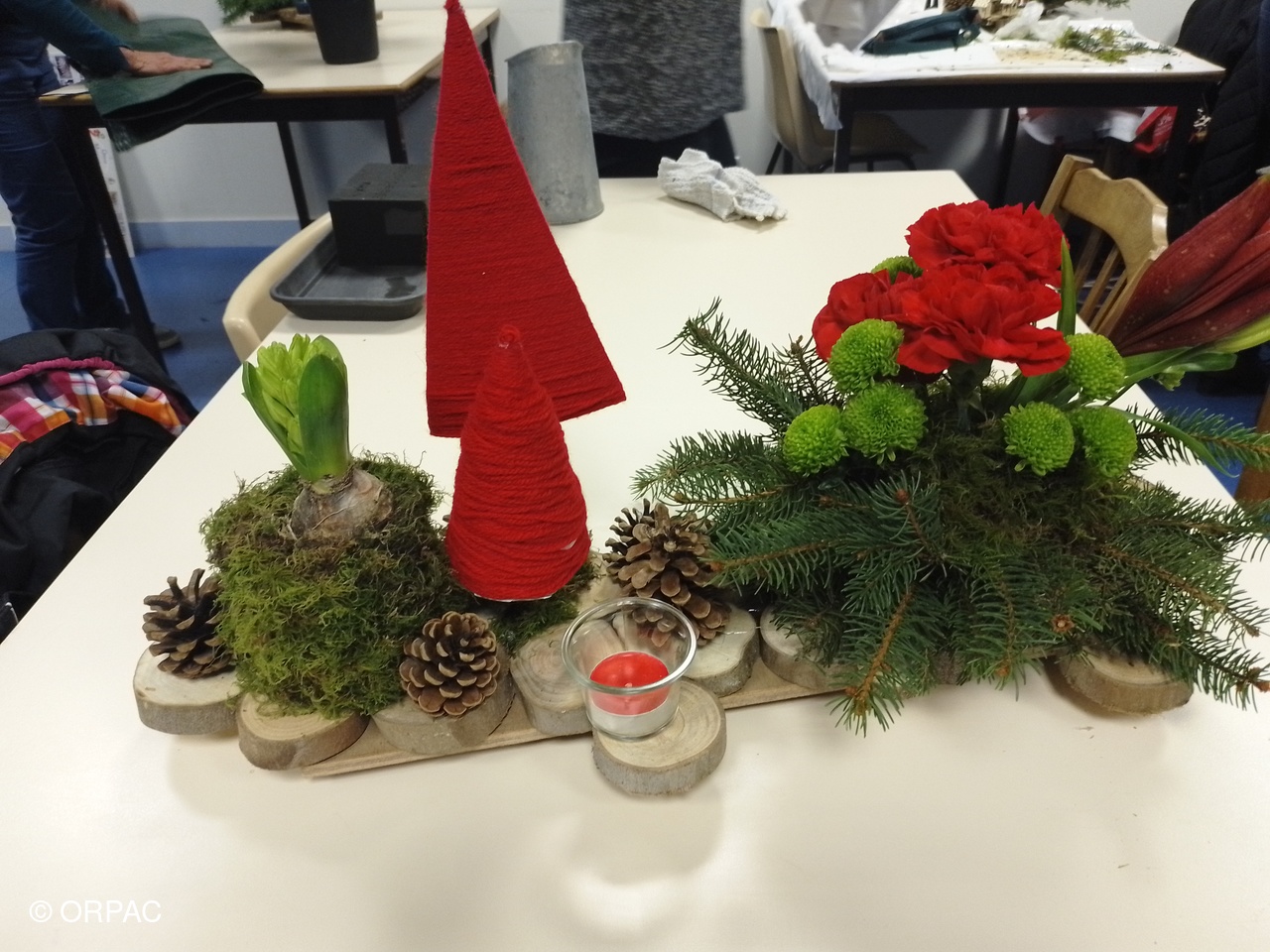 Un centre de table en longueur "La forêt en fête" a été réalisé par nos adhérentes