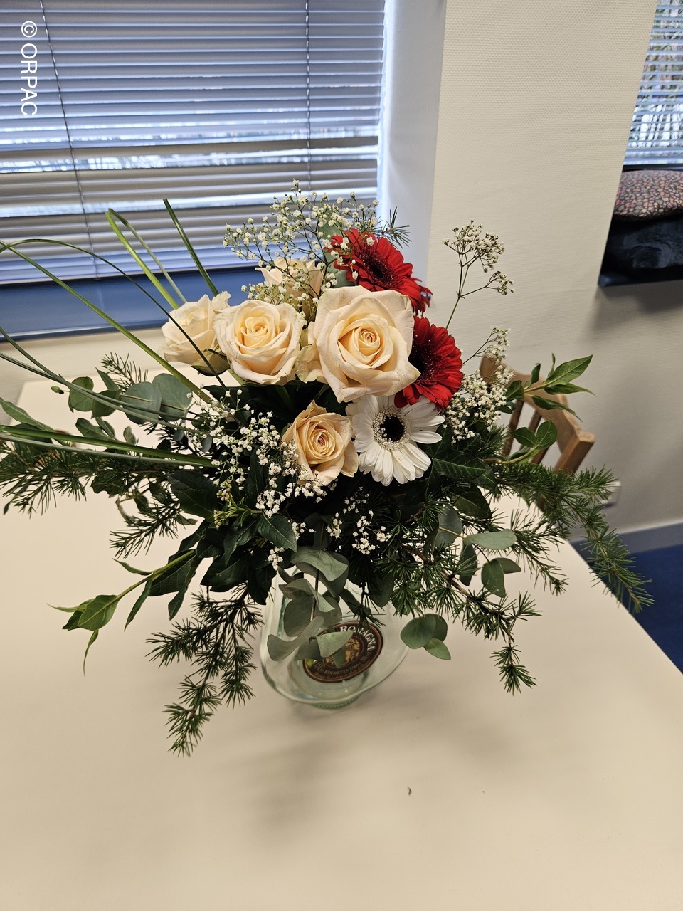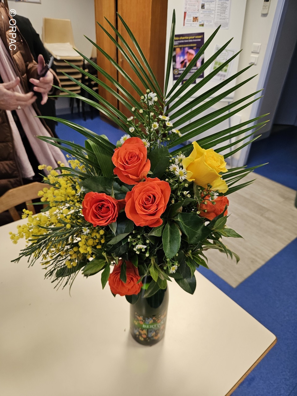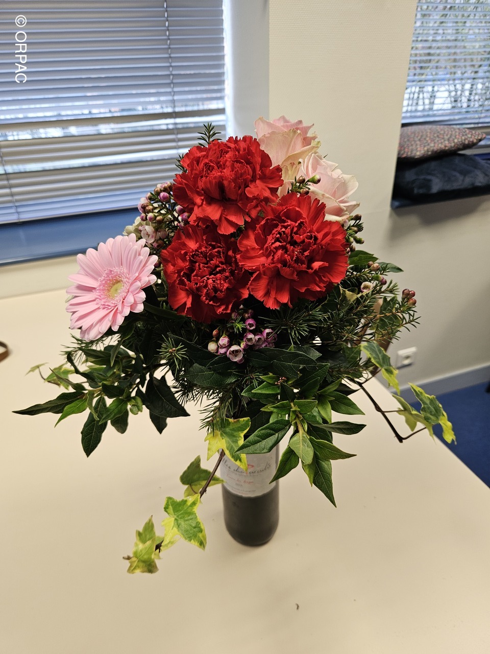 Nos adhérentes ont créé une composition (centre de table) sur une bouteille...Joli présent