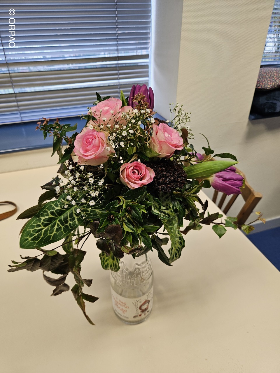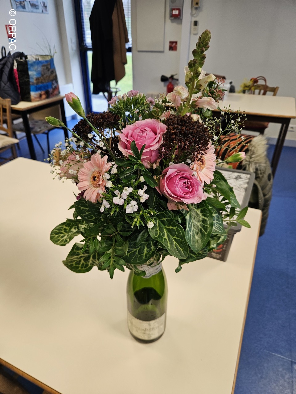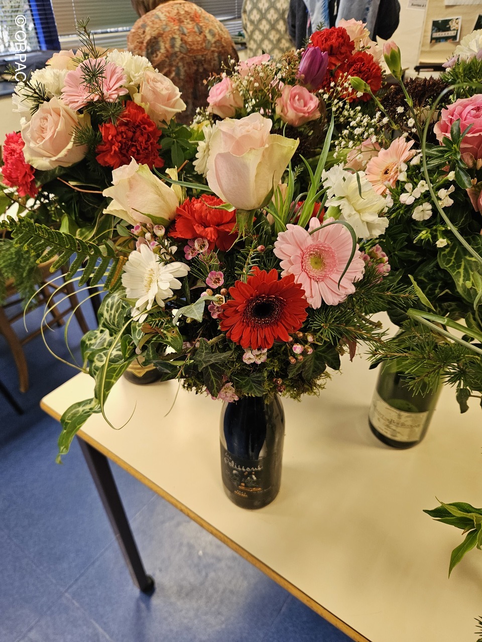 Nos adhérentes ont créé une composition (centre de table) sur une bouteille...Joli présent
